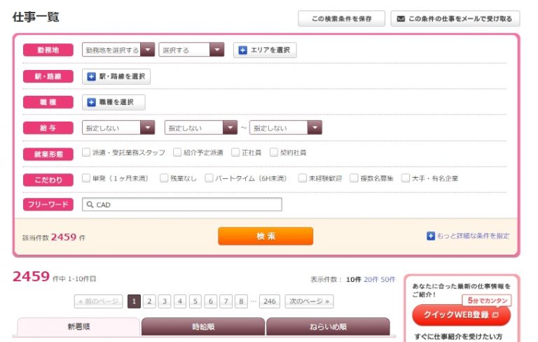 採用されれば最長3年間同じ職場で働くことになります。よりよい環境でストレスなく働くためにもCAD未経験者は時給の高さよりも大手・大企業の求人が多い派遣会社を選ぶべきです。