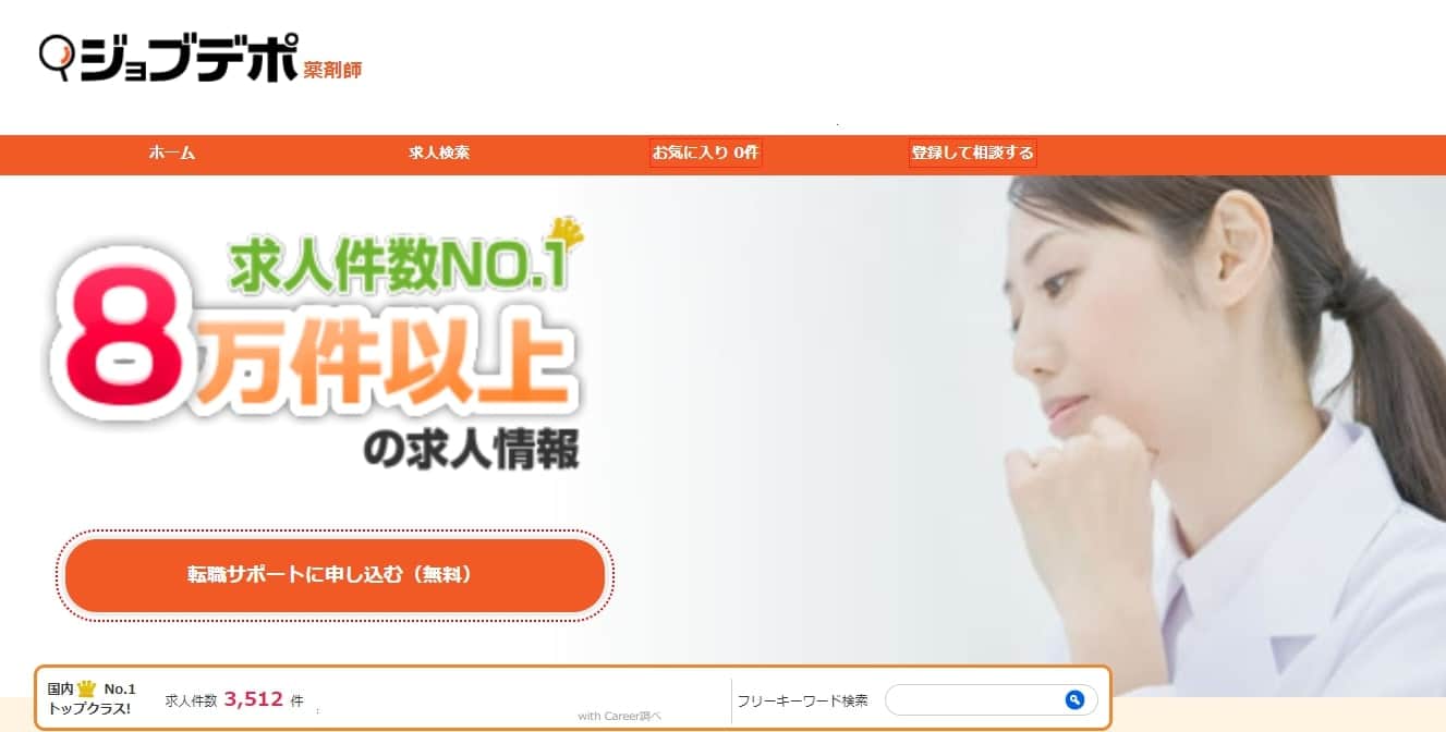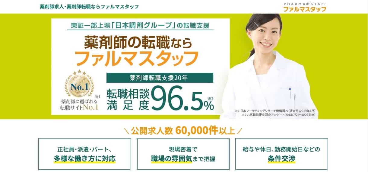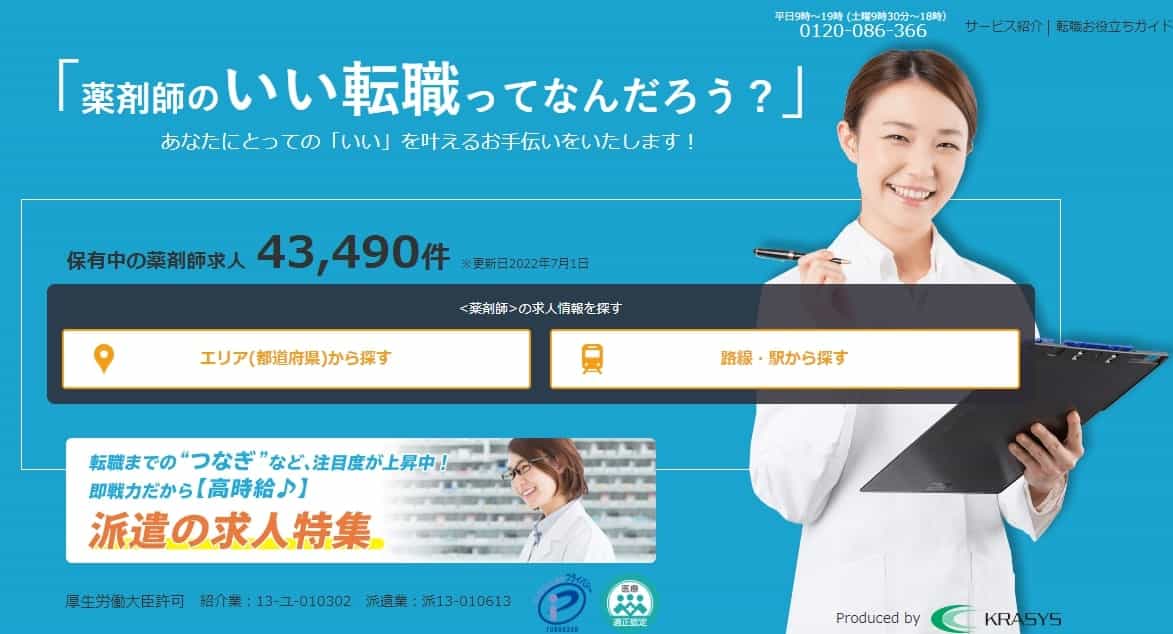薬剤師転職サポート20年 求人数も充実! |