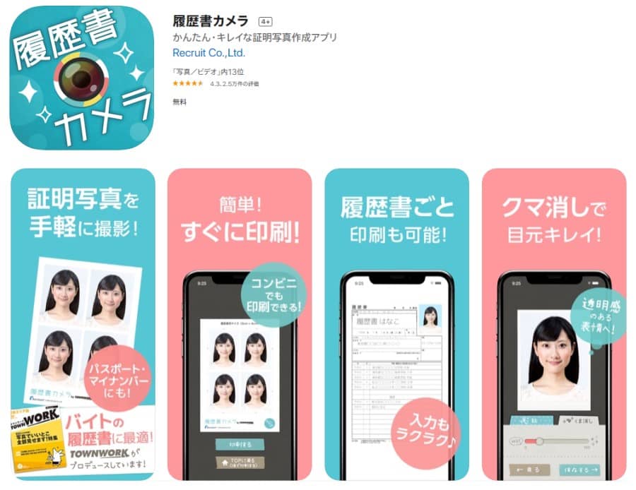 「レジュメ」は、タウンワークが開発した履歴書・職務経歴書が作成できる無料アプリです。